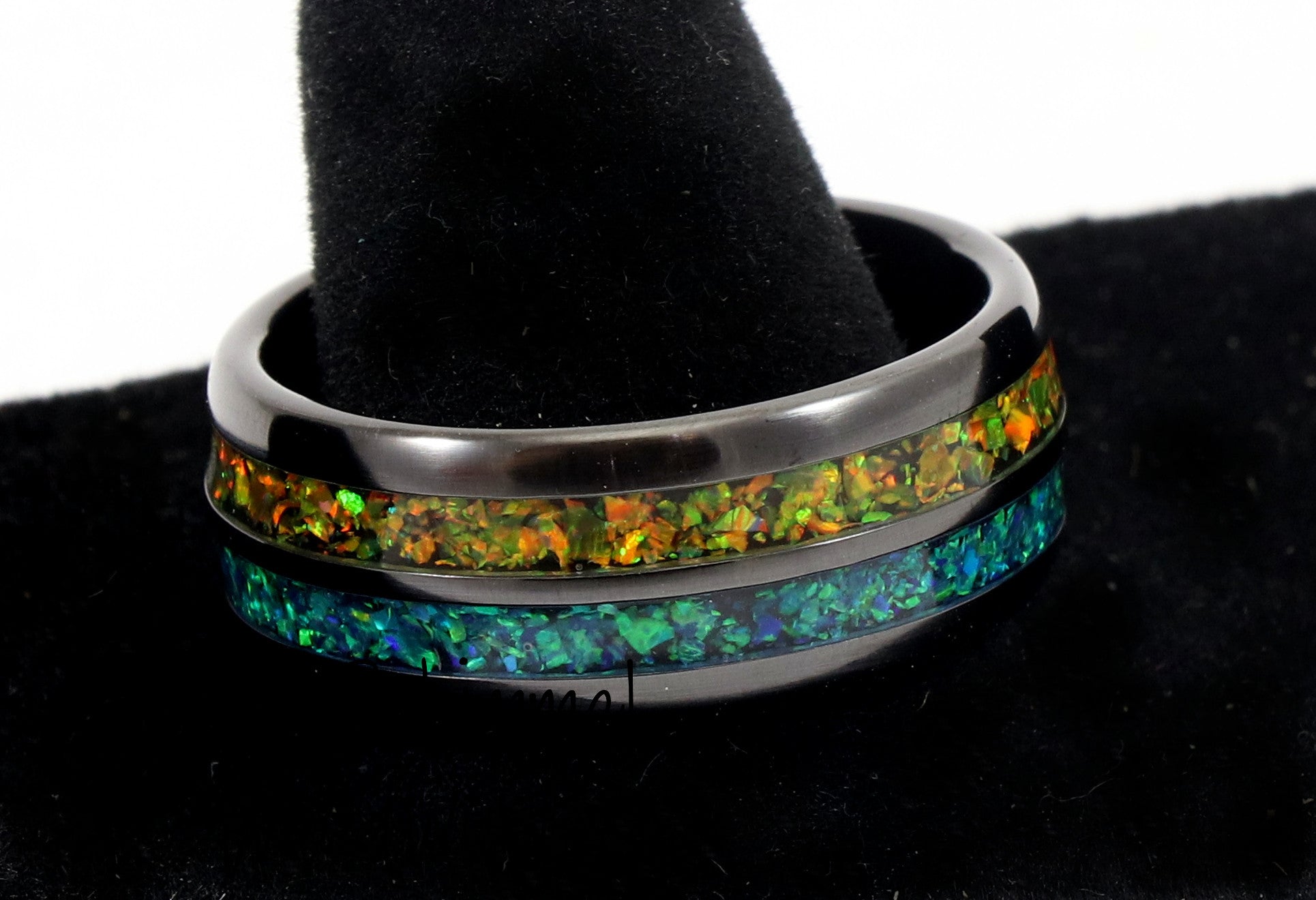 This ring is made in a process that takes several hours, cultured opal is hand placed inside ring channel and polished to give it shine.
