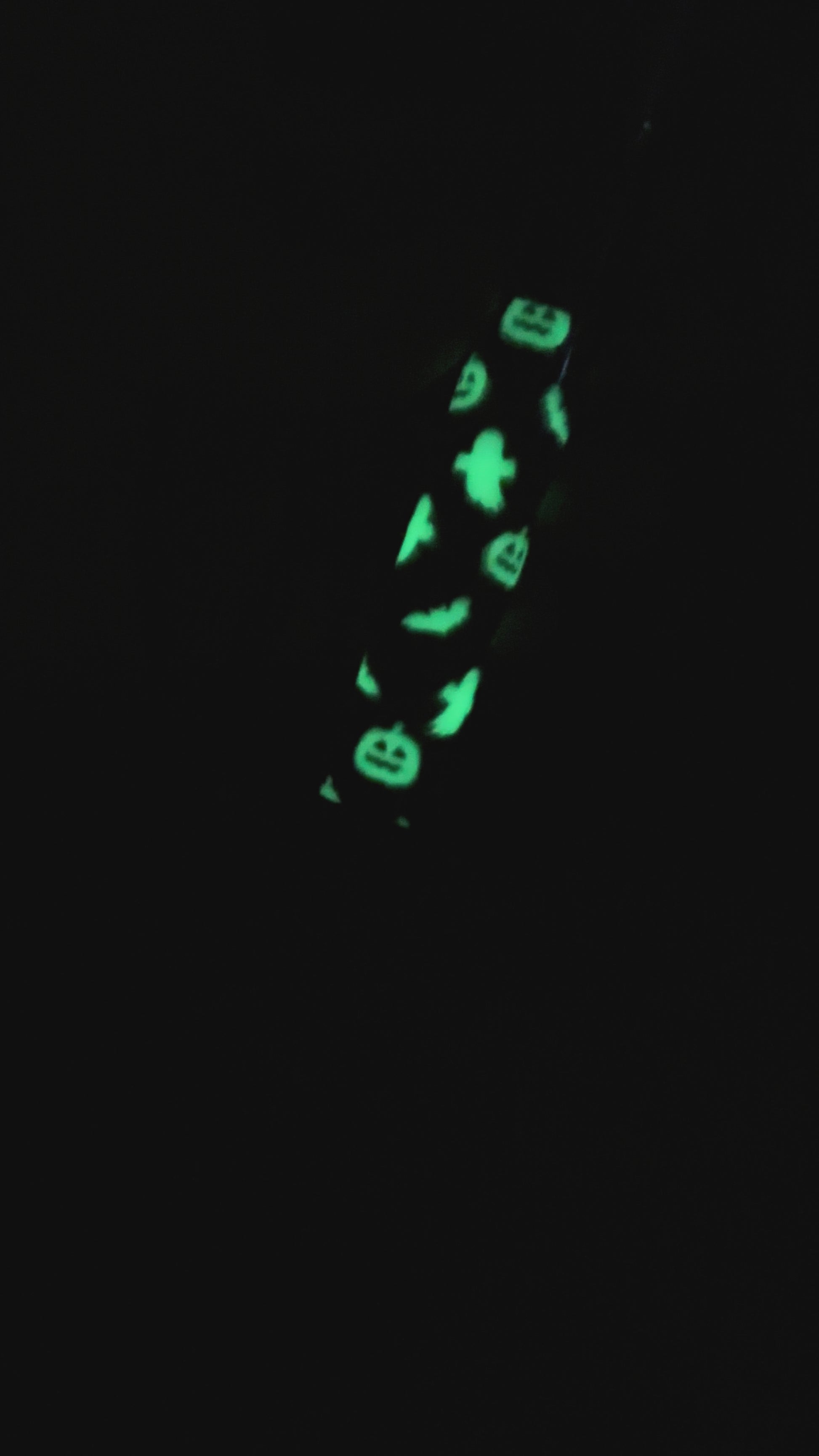 This is a handmade Fountain pen from Schimmel Fine Pens. This pen features a body made with Black Pearl & Glow in the Dark Resin with 3D printed Halloween inspired designs that are sure to delight any fan of spooky season. Features a black metal bat roll stop.
