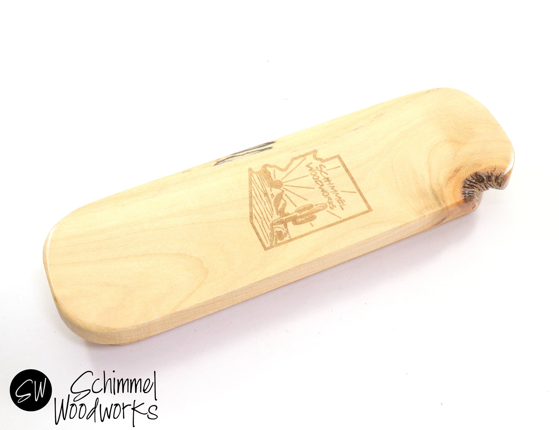 Engraved Schimmel Woodworks on bottom & felt feet to protect wood and surface.