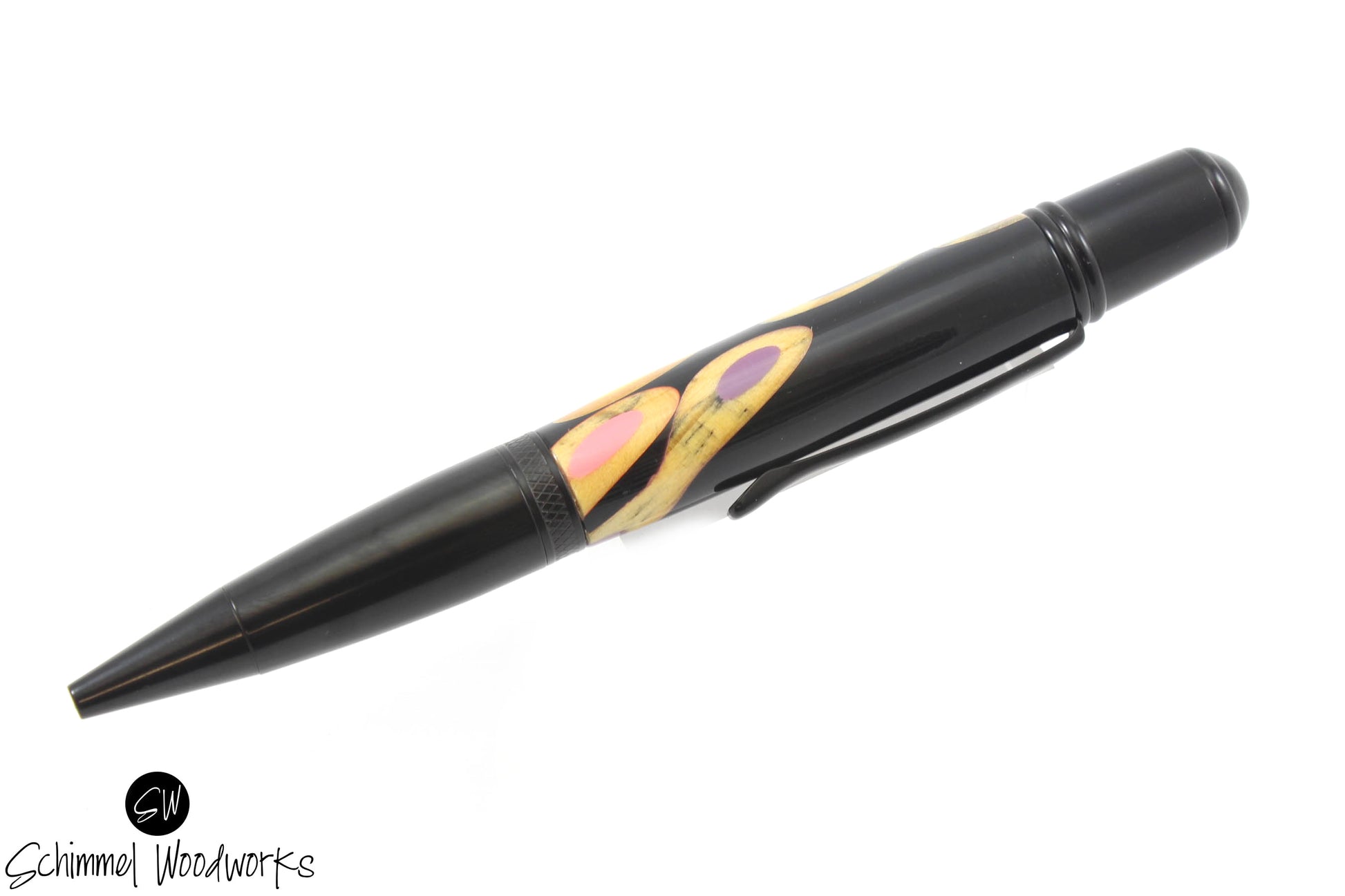 This is an awesome pen made with real colored pencils. This body was hand made in a process that takes several hours of labor. Showcasing the colors and wood in the colored pencils. Makes an excellent gift for a teacher! This pen takes a standard parker style refill