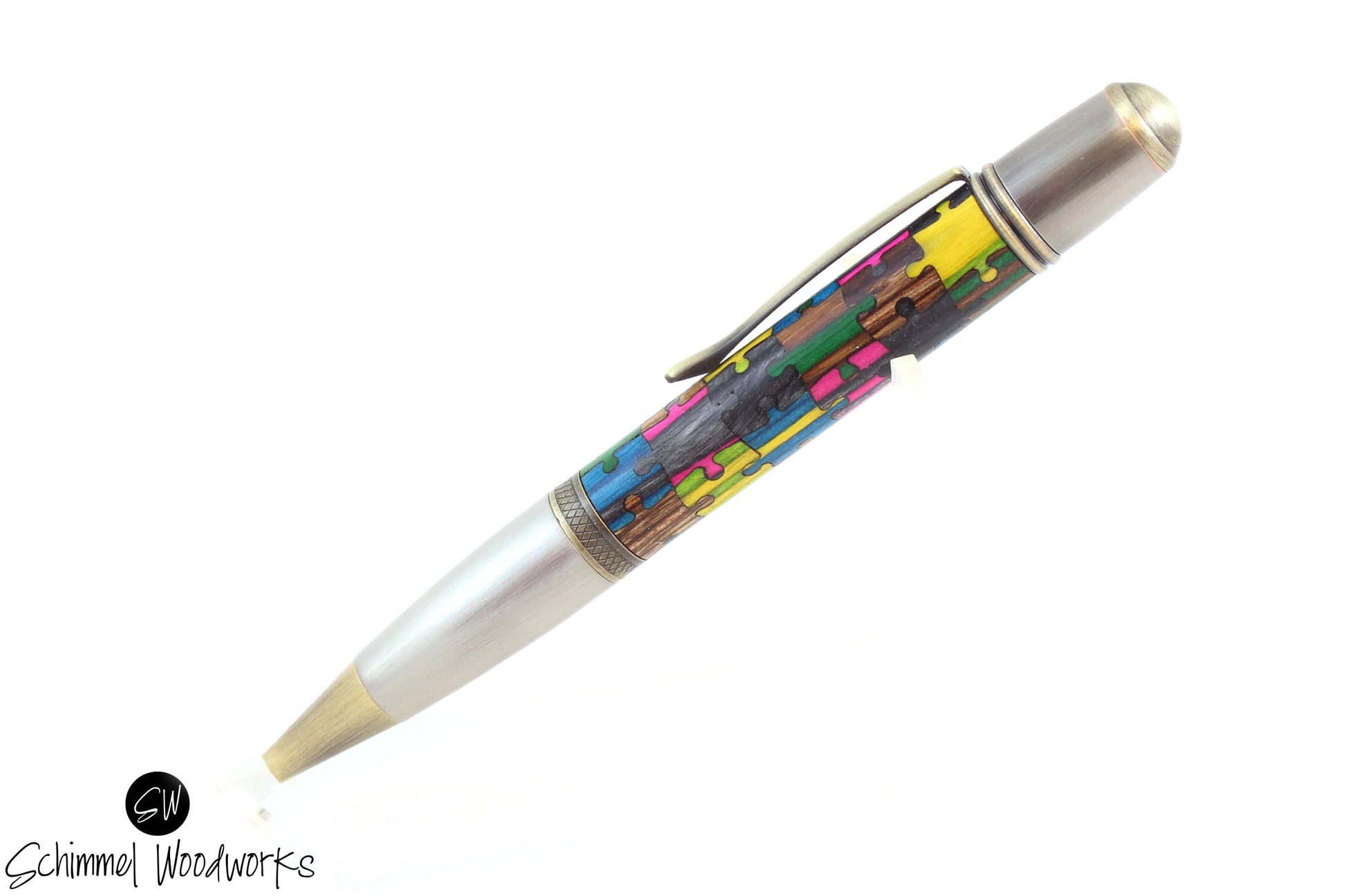 Laser cut puzzle pieces hand placed together to make this stunning puzzle wood pen