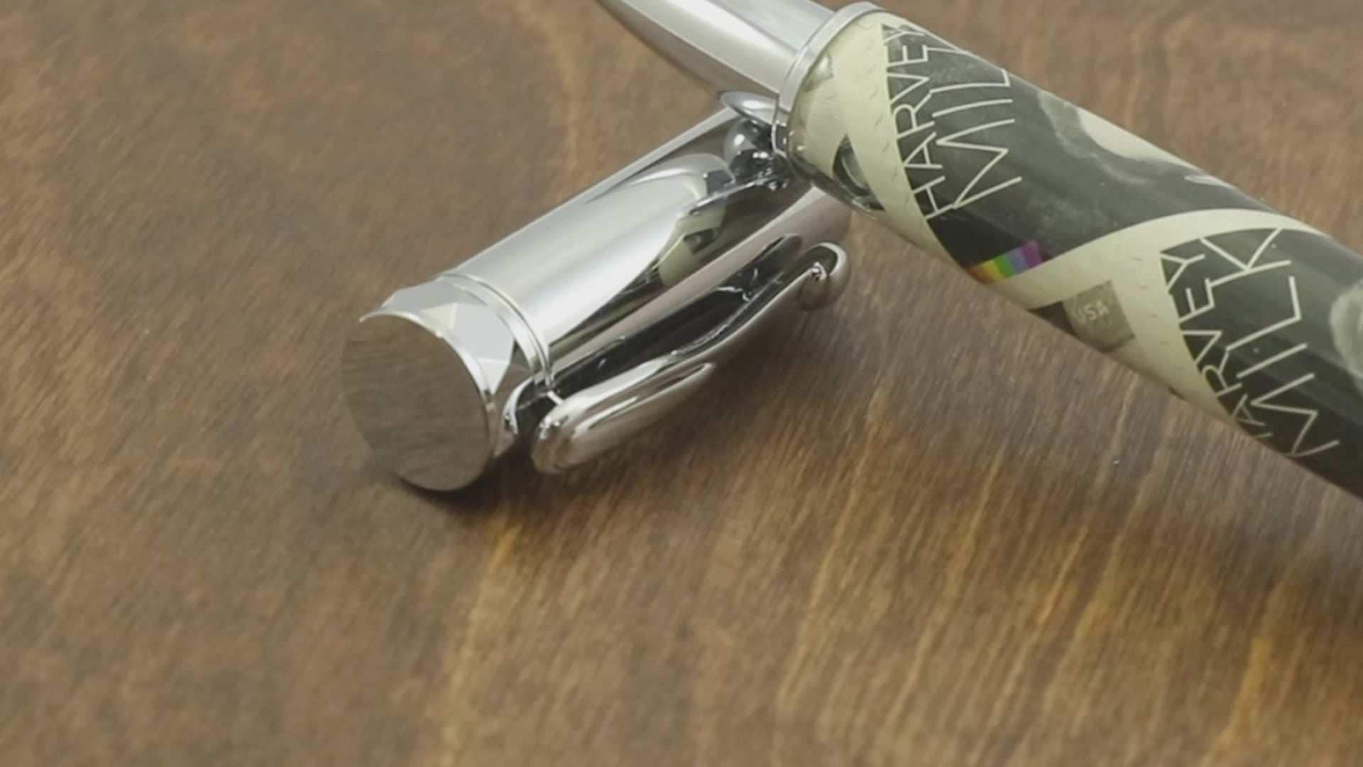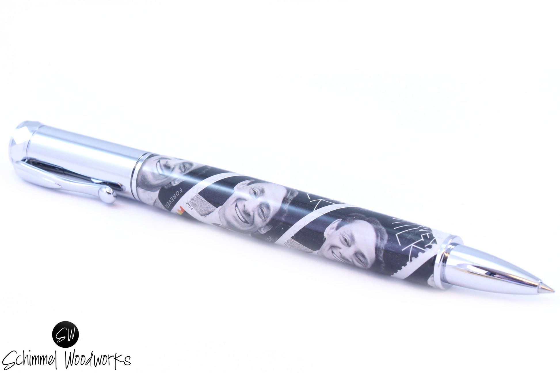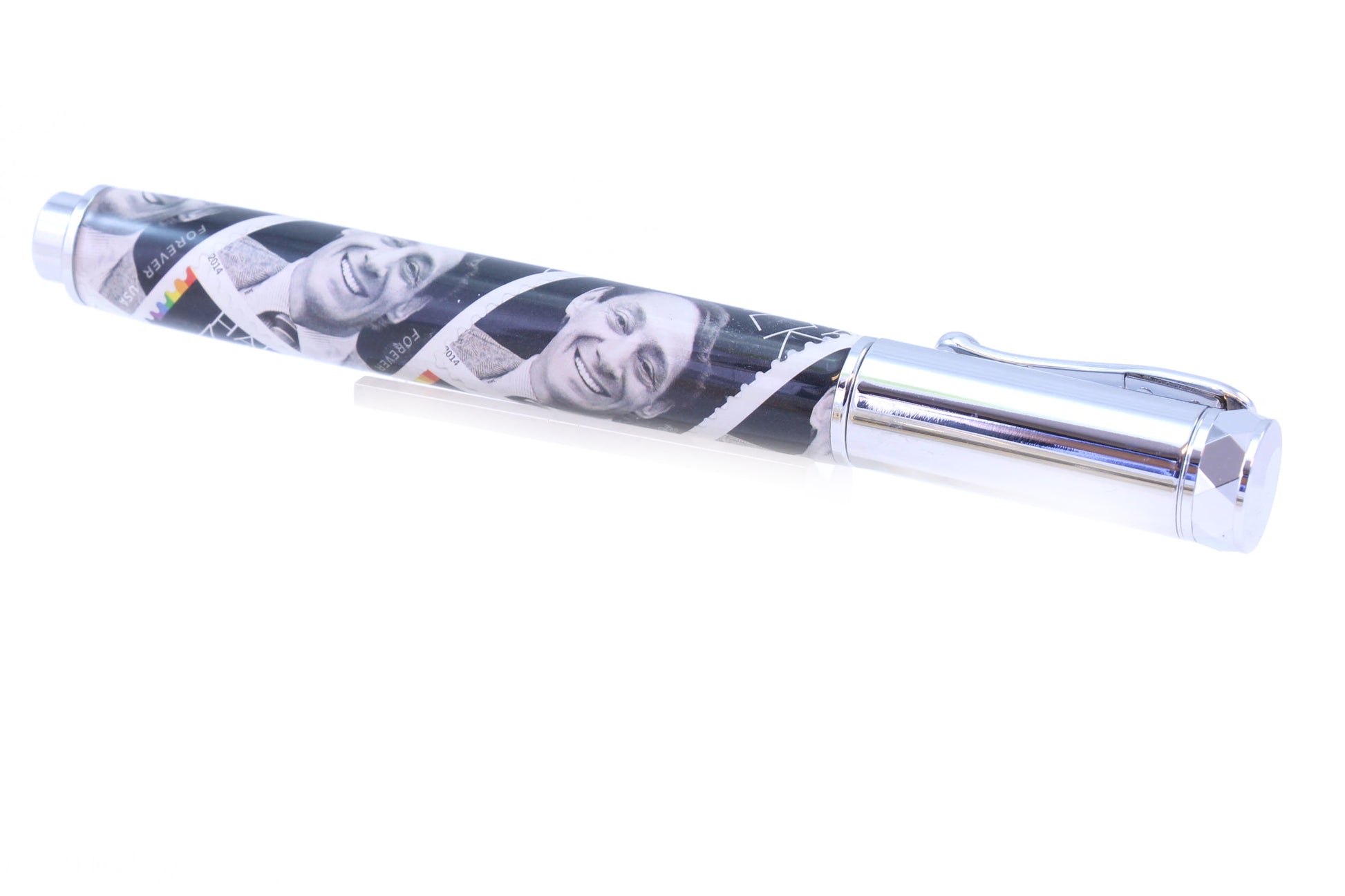 This is a pen featuring a body made with Harvey Milk Stamps, the first openly gay elected official in the US. Very cool tribute to support gay rights